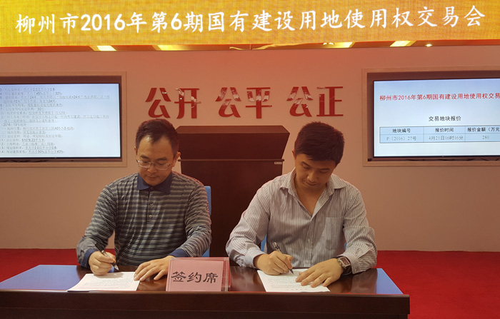 2016年4月26日上午11点,柳州市2016年第6期国有建设用地使用权交易会在柳州市土地交易储备中心举行。