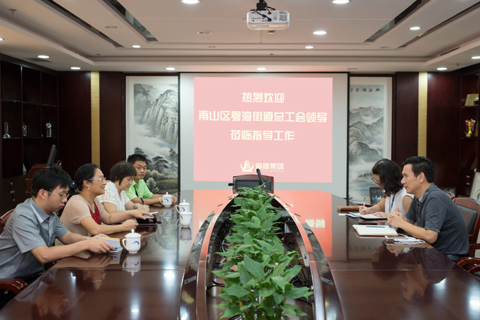 8月18日下午,南山区粤海街道总工会主席李桃、副主席陈红林等领导莅临海雅集团工会指导工作。海雅集团副总裁、工会主席李文生等接待了到访领导并表示热烈欢迎。