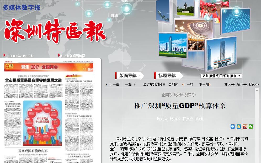“深圳从质量引领、创新驱动、转型升级等方面落实供给侧结构性改革任务,既成为供给侧结构性改革的受益者,也为全国提供了深圳特色质量型发展模式的有益经验。建议推广‘深圳质量’经验,更好地推动供给侧结构性改革。”涂辉龙建议,把质量作为新时期发展的重大战略,把大质量大标准建设作为新常态下推动有质量、有效益、可持续发展的重要抓手。