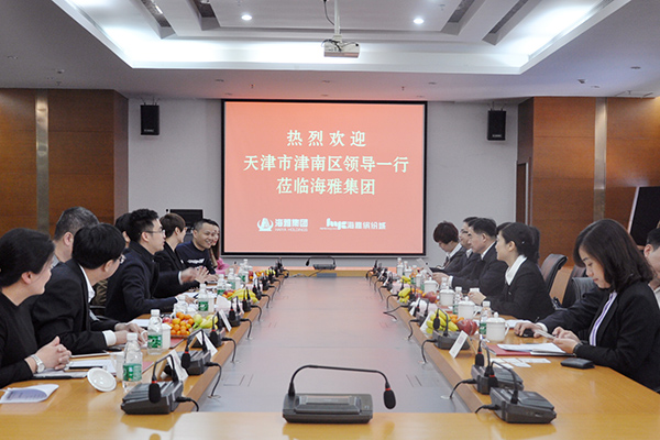 3月3日,天津市津南区委副书记、区长刘惠等相关领导一行来访海雅集团对接华侨产业园项目,集团副总裁涂尔帆、张春琛、李文生等领导出席并接待。