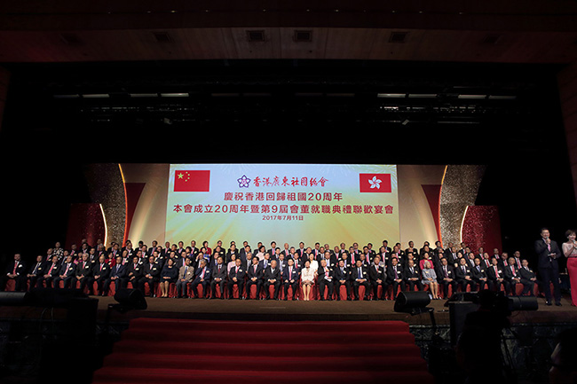 7月11日,香港广东社团总会成立20周年暨第九届会董就职典礼在香港会议展览中心举行。