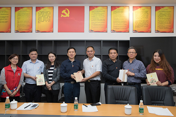 最后,社区党委等领导向海雅缤纷城商业有限公司党支部赠送了《习近平用典》等红色书籍。
