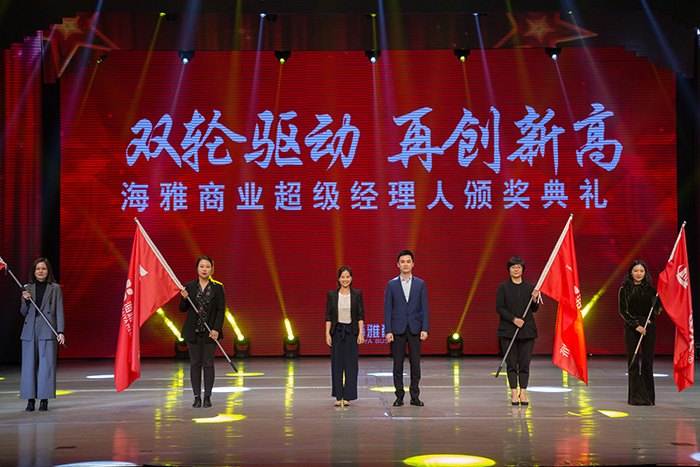 “双轮驱动,再创新高”。3月27日下午,海雅商业首届“超级经理人”颁奖典礼暨项目授旗仪式在海雅大剧院隆重举行。海雅集团常务副总裁、海雅商业总经理涂尔帆,海雅集团副总裁、海雅商业常务副总经理涂雪明,海雅商业副总经理姚晓凤以及海雅商业旗下各项目总经理、各门店代表参加了本次典礼。