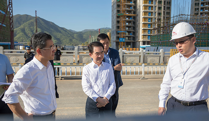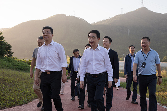 深汕特别合作区党工委副书记、管委会主任黄伟平(左)陪同涂辉龙主席(右)一行调研